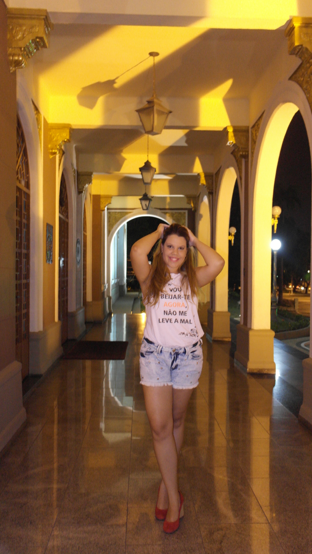 Carnaval está chegando uhuuul e eu resolvi montar um look para vocês, um look casual super confortável mas nada tão exagerado, mas é claro que Carnaval pode tudo, você pode exagerar nas fantasias, maquiagens, adereços e nada melhor que um short jeans e a blusa optei por uma bem carnavalesca, comprei a blusa na Leader que vem escrita “Vou beijar- te agora, não me leve a mal” e atrás vem escrito “Hoje é carnaval” é uma marchinha antiga mas bem divertida e o mais legal que nos dizeres da blusa tem um brilho e na palavra agora vem na cor coral para enfatizar a palavra.
