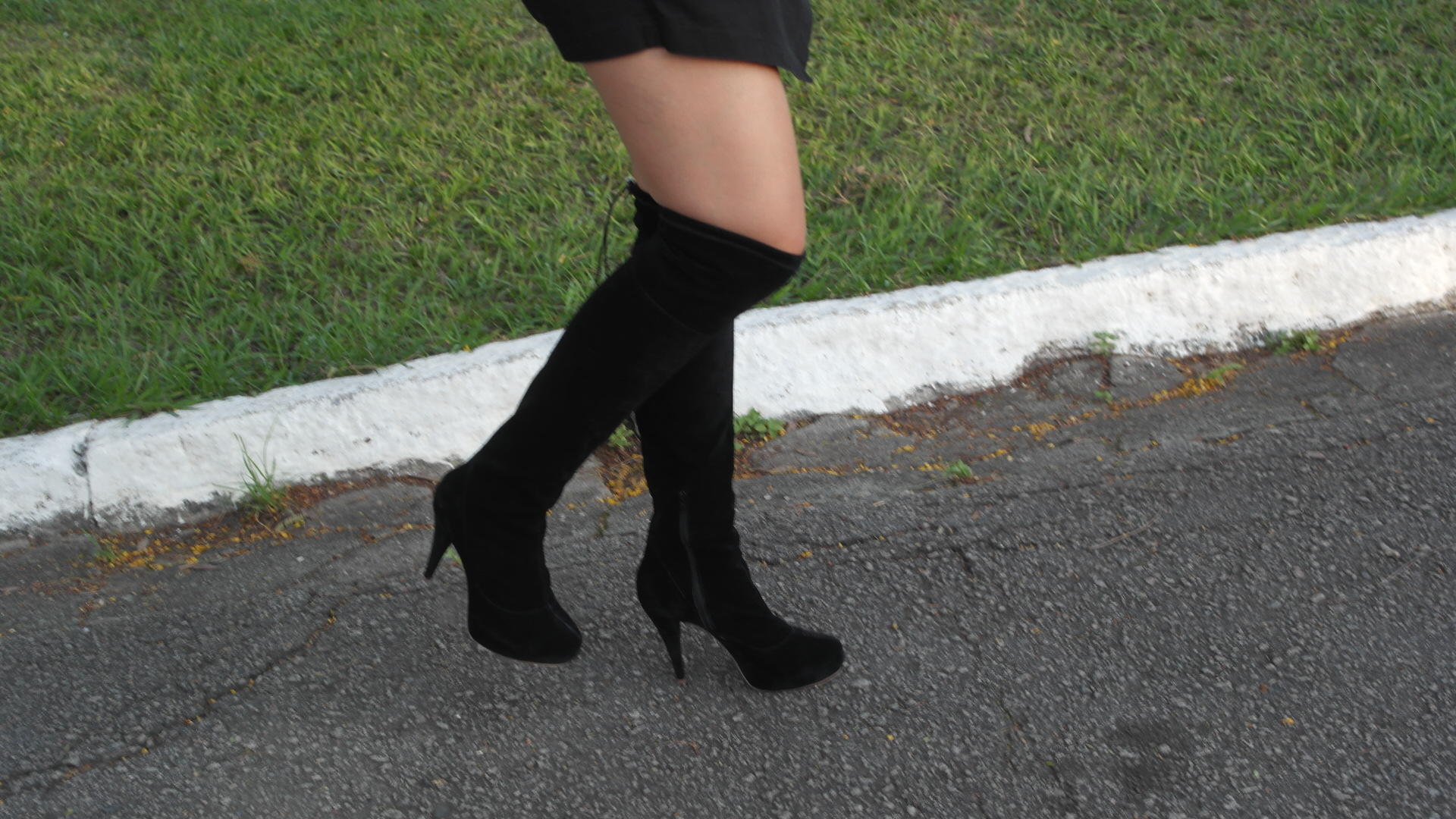 O look de hoje é mais que especial, a nova tendência para o outono/inverno são as botas acima dos joelhos e pra mim foi a melhor compra desse ano até o momento, essa bota é super confortável, veste bem e fica bem com qualquer roupa. Já falei aqui no blog sobre essa tendência, claro que eu poderia usar com calça jeans, que fica mais elegante, mas hoje estava muito quente, por isso optei por um short saia.