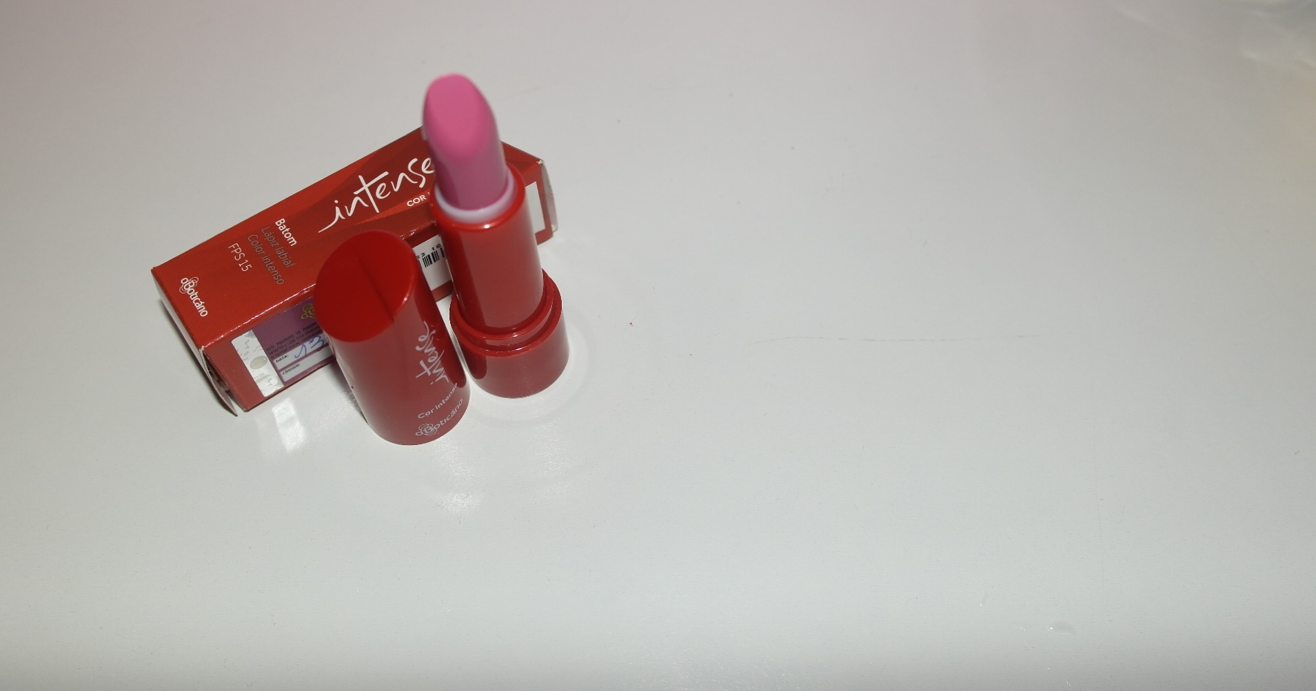 Hoje teve a confraternização no trabalho e aproveitamos e fizemos um amigo oculto, a Kíssila que foi minha supervisora me tirou e me deu uma necessaire rosa bebê e um batom rosa da linha Intense do Boticário parecido com rosa chiclete, como eu me apaixonei, resolvi fazer a resenha dele hoje mesmo para vocês.