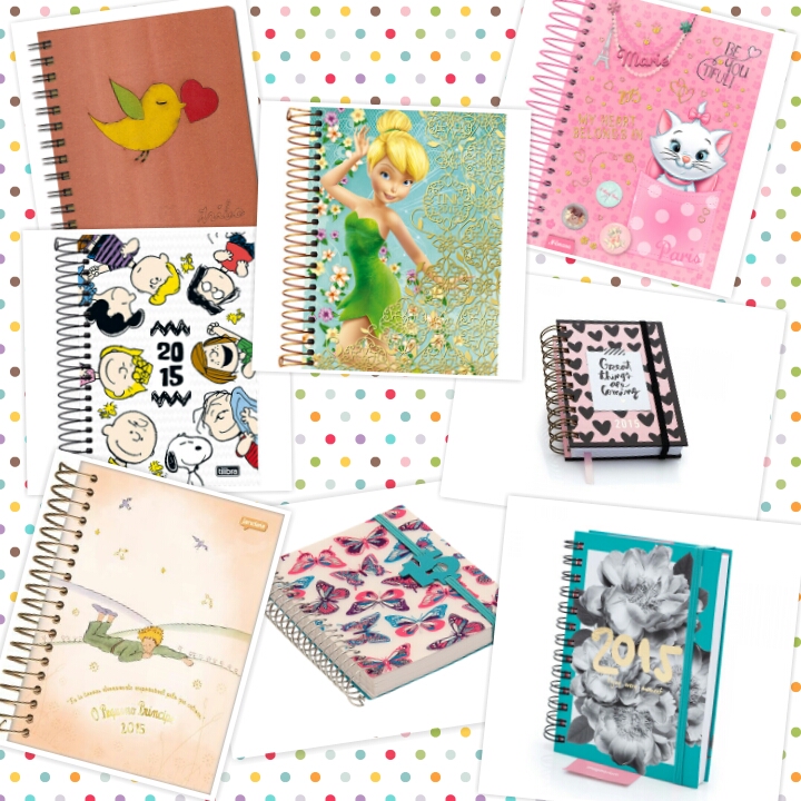 Não sei se já cheguei a falar aqui, mas eu sempre usei agenda, sempre gostei e muito, porque é uma forma de registrar nossas lembranças, nossas diversões, tristezas tudo que vivemos no dia a dia e acredito que eu não devo perder essa essência nem tão cedo e você pode usar a agenda como um bloco de anotações, de metas a serem cumpridas nesse ano de 2015 e vice versa e por isso resolvi trazer para vocês agendas super fofas e mega lindas para a inspiração de cada uma de vocês e é claro, você pode variar o tamanho da agenda, ou até mesmo capa dura ou espiral. PhotoGrid_1420333374830