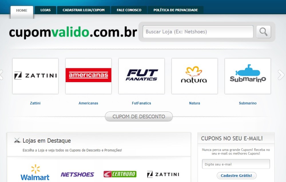 Hoje eu trago uma super NOTÍCIA para vocês. Assim que eu soube fiquei bem curiosa, porque eu não conhecia o site e achei a ideia super genial! O site Cupom Válido é um site de cupons de descontos em diversas lojas, tudo online.