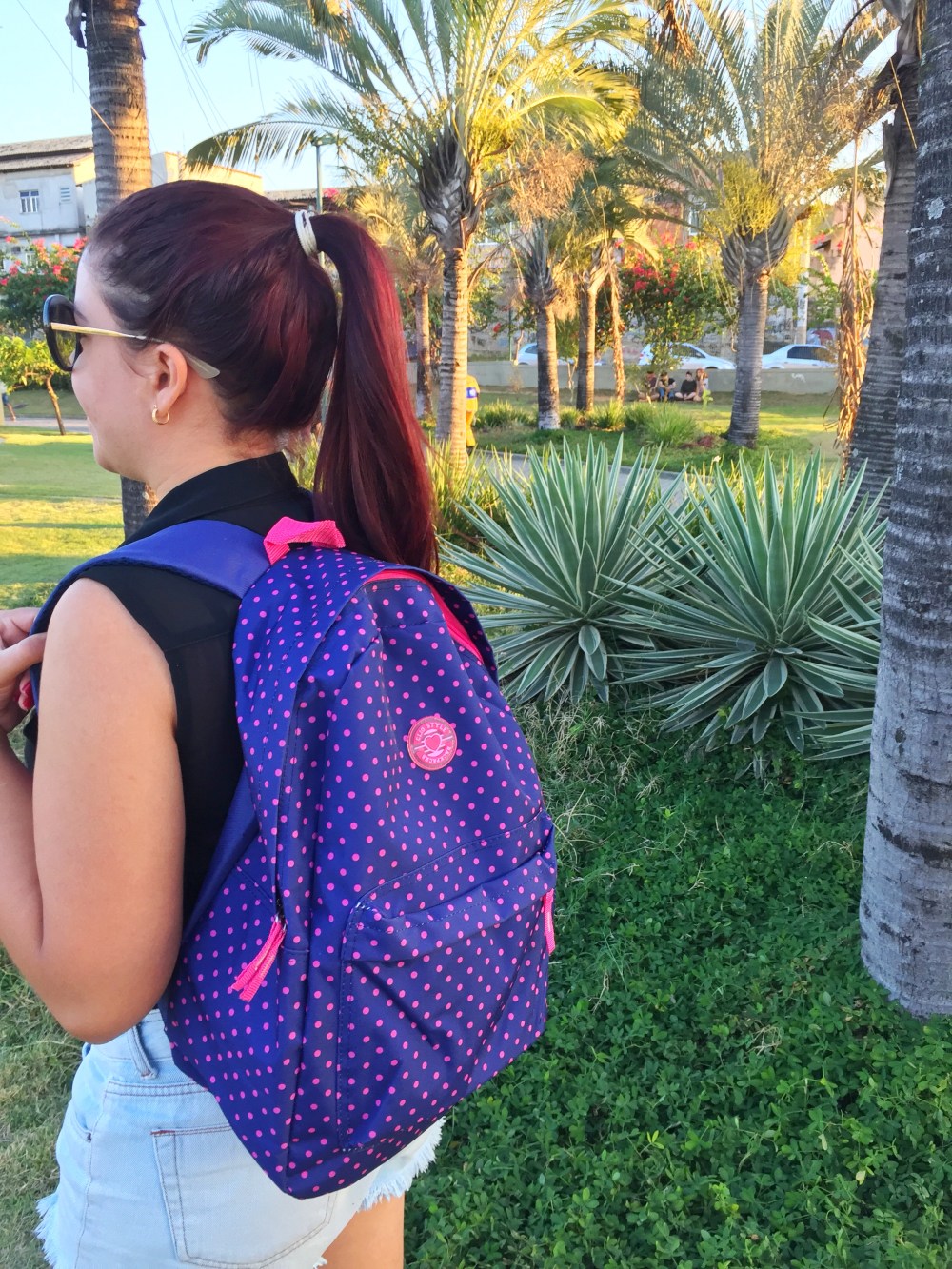 Eu recebi essa linda mochila roxa e azul com bolinhas rosas 🎒 que achei a minha cara e eu posso usar em qualquer lugar e o bom que ela cabe muita coisa. Já estou usando bastante. Eu amo mochila e nos facilita demais para colocarmos nossas coisas.