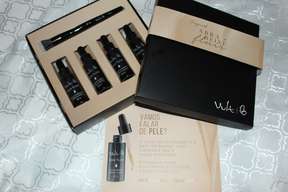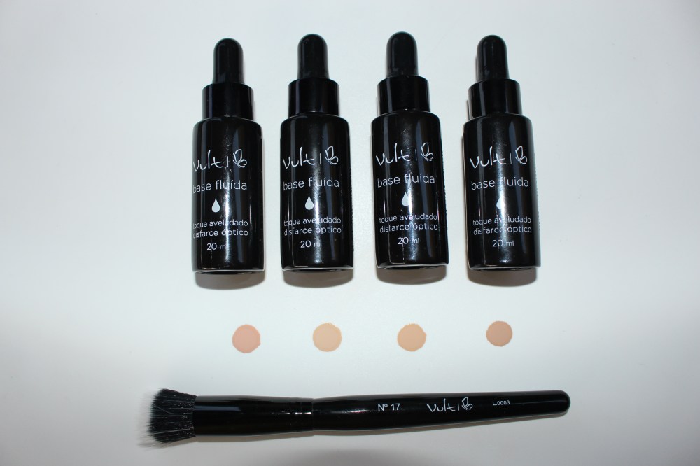 Eu amo receber presskit da Vult e eu sempre corro para trazer resenhas para vocês e quando esse presskit chegou eu PIREI! A Vult  lançou 8 tonalidades de base fluida. Eu recebi 4 tonalidades, entre elas: 01, 02, 03 e 04 e um pincel nº 17. 😉