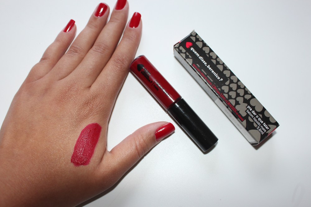 Em abril desse ano a Quem Disse Berenice? fez a campanha do dia do beijo e você só precisava fazer o cadastro no site e pegar o batom na data e na loja escolhida. Tinham três opções de batons líquido mate (caféli, figolili, cerejali) para escolher e eu escolhi a cor cerejali.