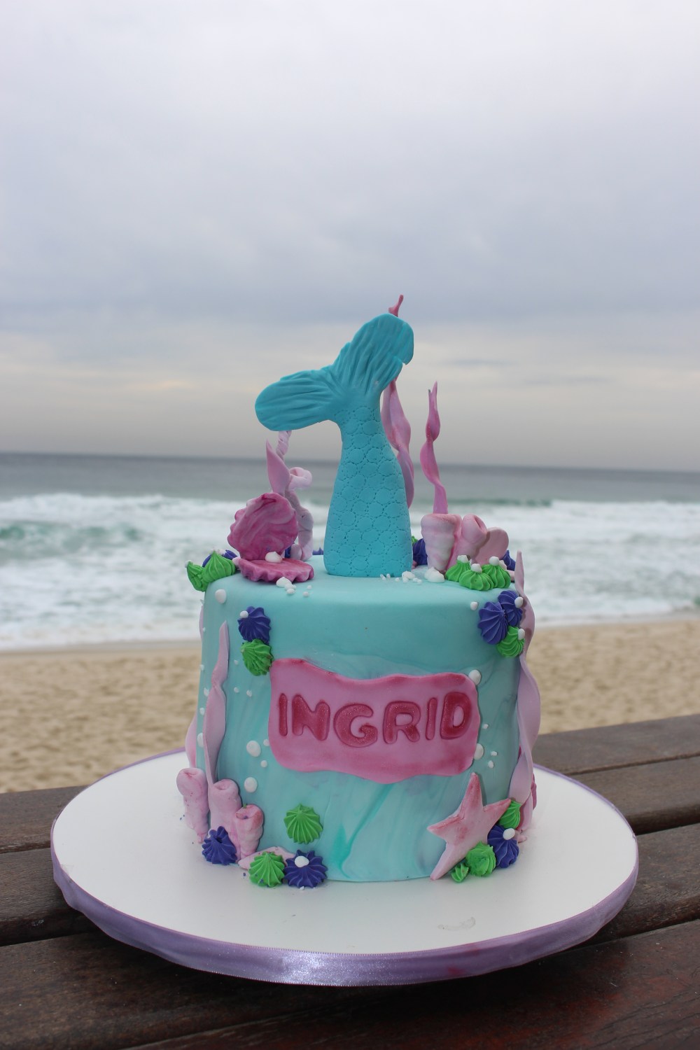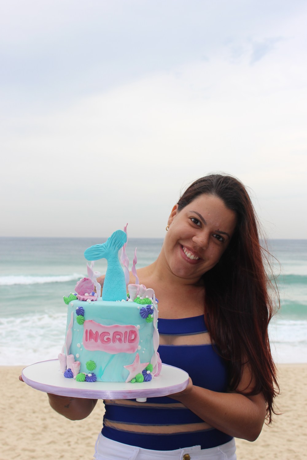 3. Ai, que bolo lindo! Amei a escolha do tema sereia, é encantador e a foto com a praia ao fundo teve tudo a ver. Parabéns Ingrid, muitas felicidades!