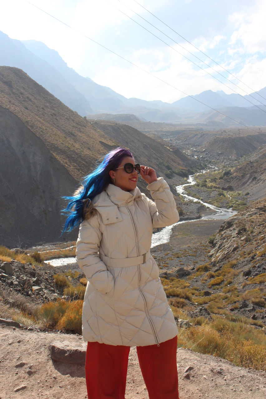 Nosso segundo passeio com a Destino Chile foi conhecer o Embalse El Yeso que é uma represa que fica a 3.000 mil metros acima do nível do mar, que fica na região de Cajón del Maipo no meio da Cordilheira dos Andes.O guia Andres, uma pessoa super divertida, agradável demais, nos buscou no hostel por volta de 06:20 da manhã do dia 20 de maio com sua van de 15 lugares e em seguida passou para pegar as demais pessoas. Para chegarmos ao Embalse, o trajeto leva em torno de 3 horas, por isso é recomendado levar agasalhos por sairmos cedo e por ser muito frio.Nossa primeira parada foi no Cumpres del Maipo para tomarmos um café da manhã que custa 5.000 pesos com direito a café, leite, chocolate quente, suco de laranja, iogurte, pão, queijo, peito de peru, salame, ovo mexido e biscoitinho. Nesse mesmo local do café da manhã tem uma loja de aluguel roupas de inverno.