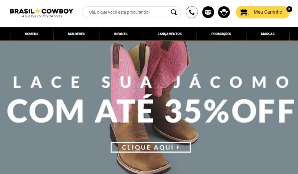 A https://www.brasilcowboy.com.br/ é uma empresa que já está no mercado brasileiro desde 2009, com atendimento online de segunda à sexta das 8:00 às 18:00. No site você encontra todas as marcas que a empresa trabalha.