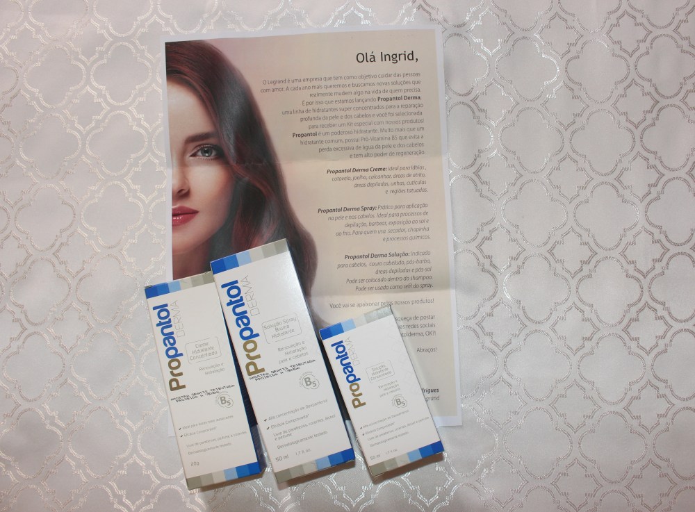 Recebi três produtos e venho falar um pouquinho de cada um deles para vocês. Primeiro vou falar do Propantol Derma Creme que tem finalidade de hidratar e renovar a pele. Ele é ideal para os lábios, cotovelo, joelho, calcanhar, área de atrito, áreas depiladas, unhas, cutículas e regiões tatuadas.