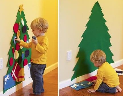 Uma outra ideia super interessante são as árvores grudadas na parede, você pode dar asas a sua criatividade colocando madeiras, pisca pisca, barbante, papel colorido que está super em alta.