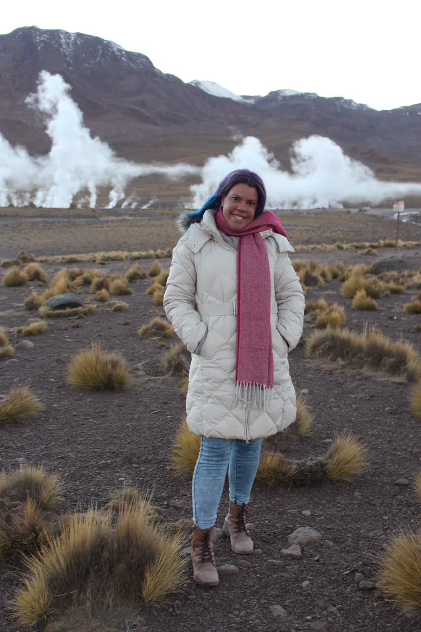 Eu e minha irmã não entramos, por mais que eu quisesse, é diferente do que temos, mas estava muito frio do lado de fora e a minha irmã passou mal, então estava mega preocupada com toda essa situação. (minha irmã passou mal por conta da altitude).Em seguida paramos em Vado Putana, uma lagoa que fica repleta de flamingos no verão, como estamos no outono, os flamingos migram para outras regiões, pois a lagoa congela.Muito obrigada Destino Chile  por mais um passeio esplêndido! ❤