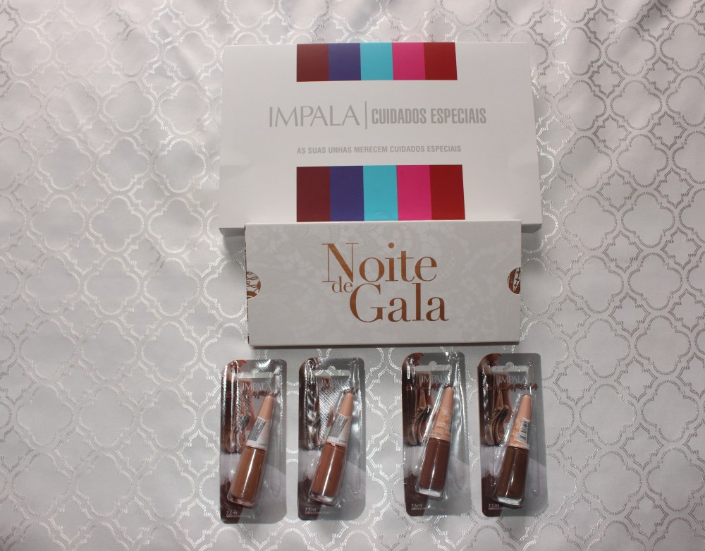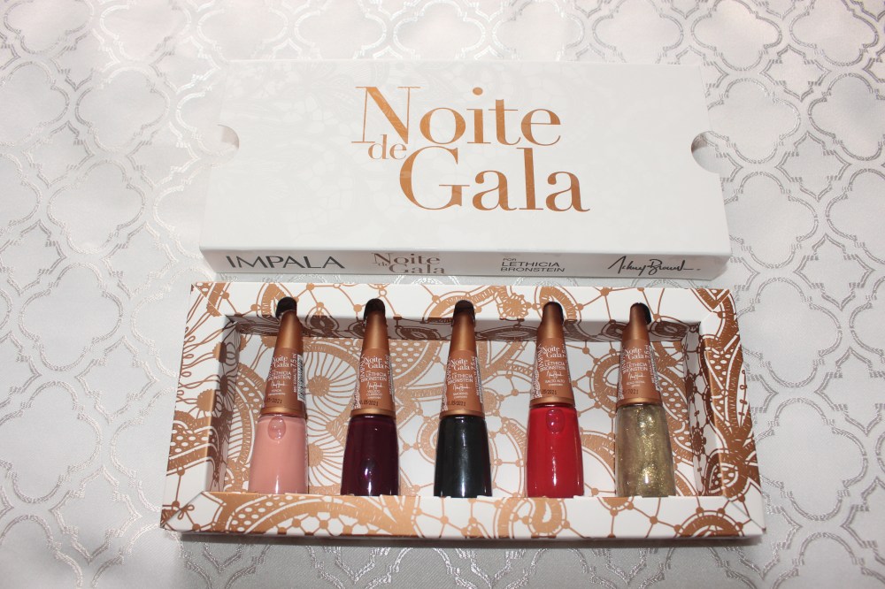 A linha Noite de Gala possui cinco cores de esmalte inspirados no tapete vermelho em parceria com a estilista Lethicia Bronstein e a linha Bailarina com oitos cores de esmaltes nude (eu recebi 4 deles).