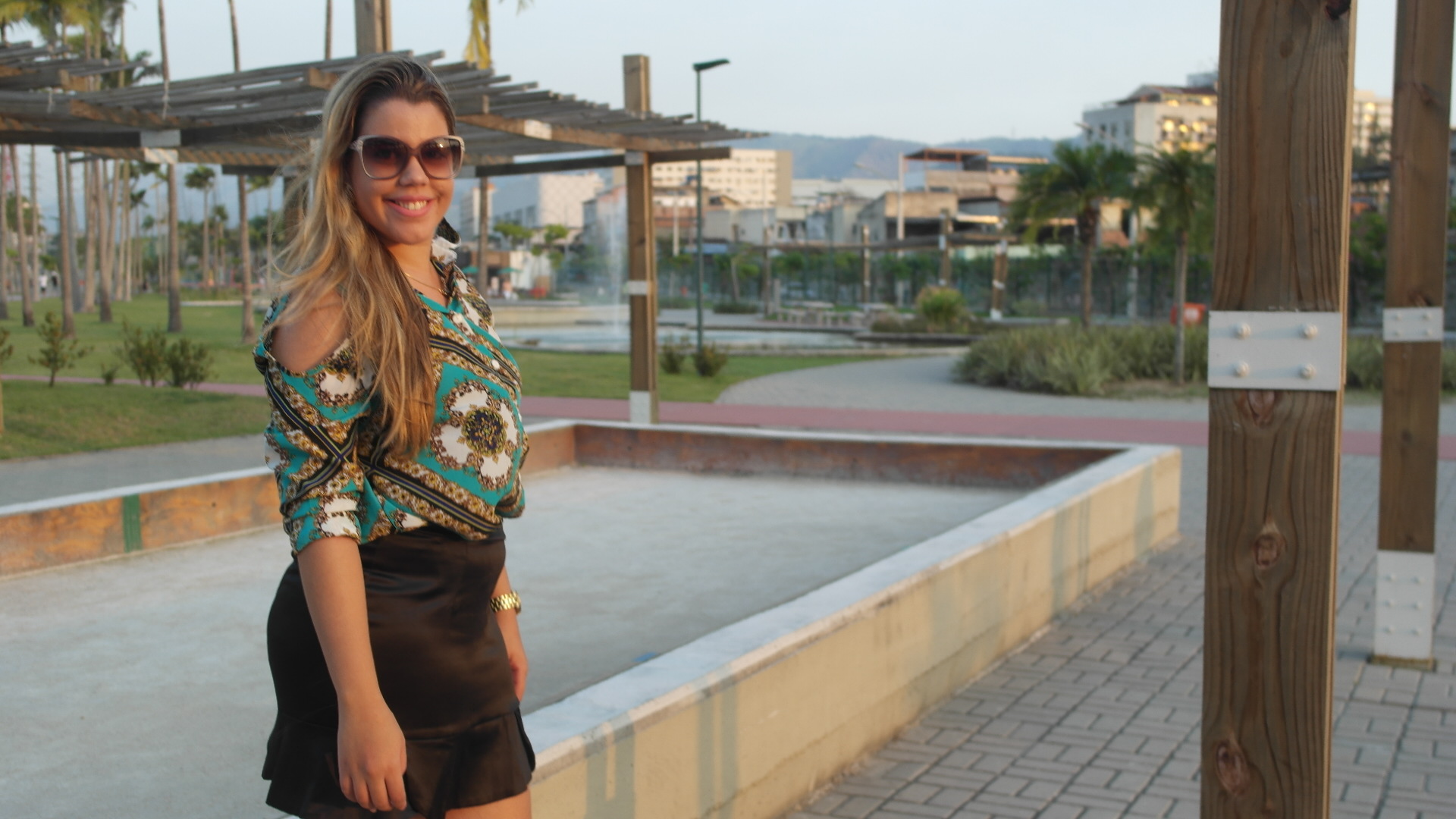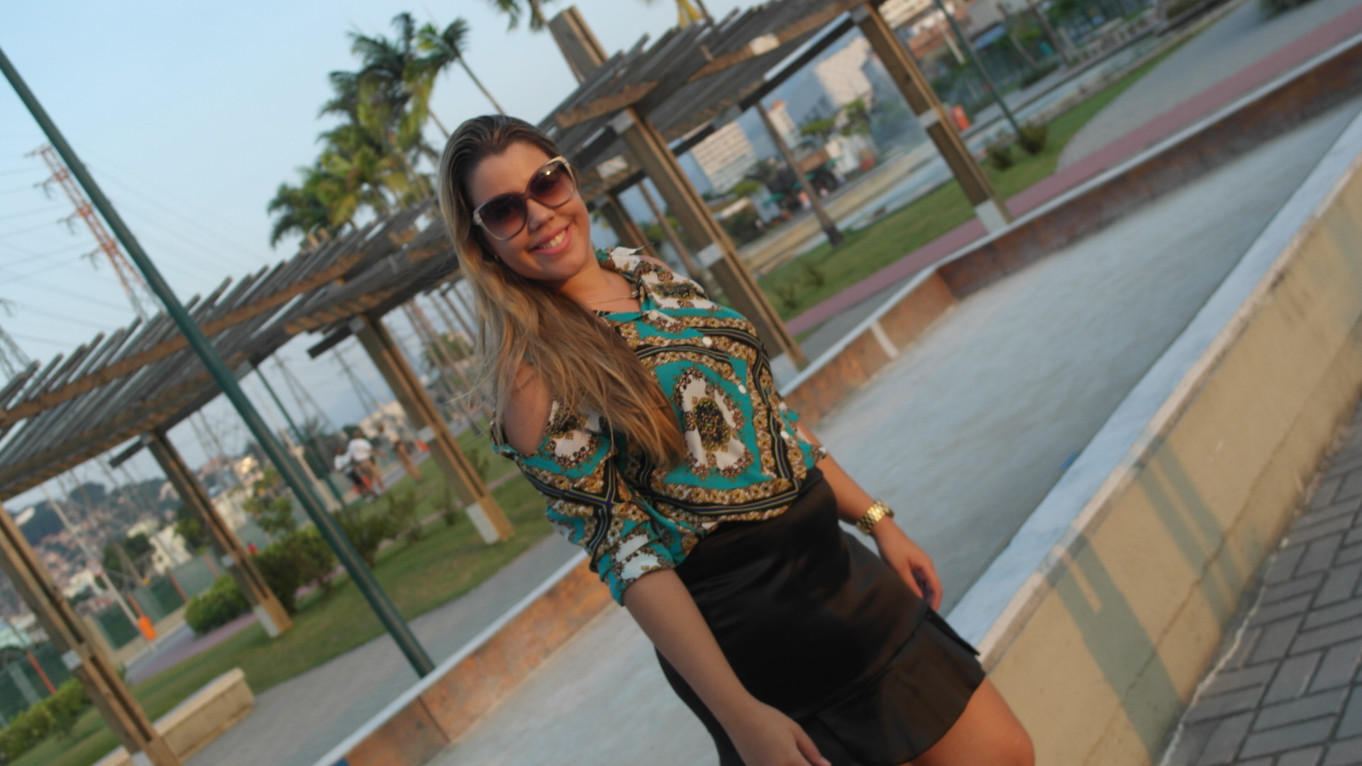 Resolvi aderir duas peças no look que estão em alta no outono/inverno, o animal print seja qual for a estação, ele vem com mais força e seja qual for a estampa do animal print realça mais a cor da nossa pele e para compor o look resolvi colocar um short saia preto, para equilibrar o look, dando um destaque total na bota acima dos joelhos.