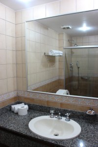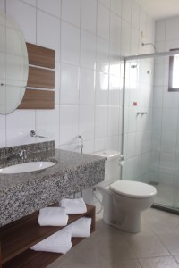 A Pousada possui diversos tipos de acomodações. Nós ficamos em dois quartos, quarto conjugado e foi muito bom, porque ficamos pertinho. Cada quarto acomoda até 4 pessoas, com acesso à internet wi-fi, TV de 32’’, frigobar, ar condicionado, secador de cabelo, cofre eletrônico e a linda vista para o Parque Municipal de Petrópolis.