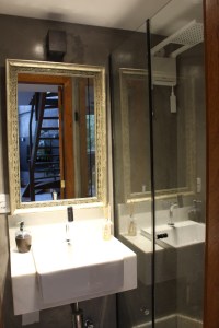 Nós fizemos as fotos no Studio. O studio acomoda até 4 pessoas, com uma sala com sofá cama, uma cozinha, closet e banheiro no primeiro andar e no mezanino uma cama de casal e um banheiro com ofurô MARAVILHOSO.
