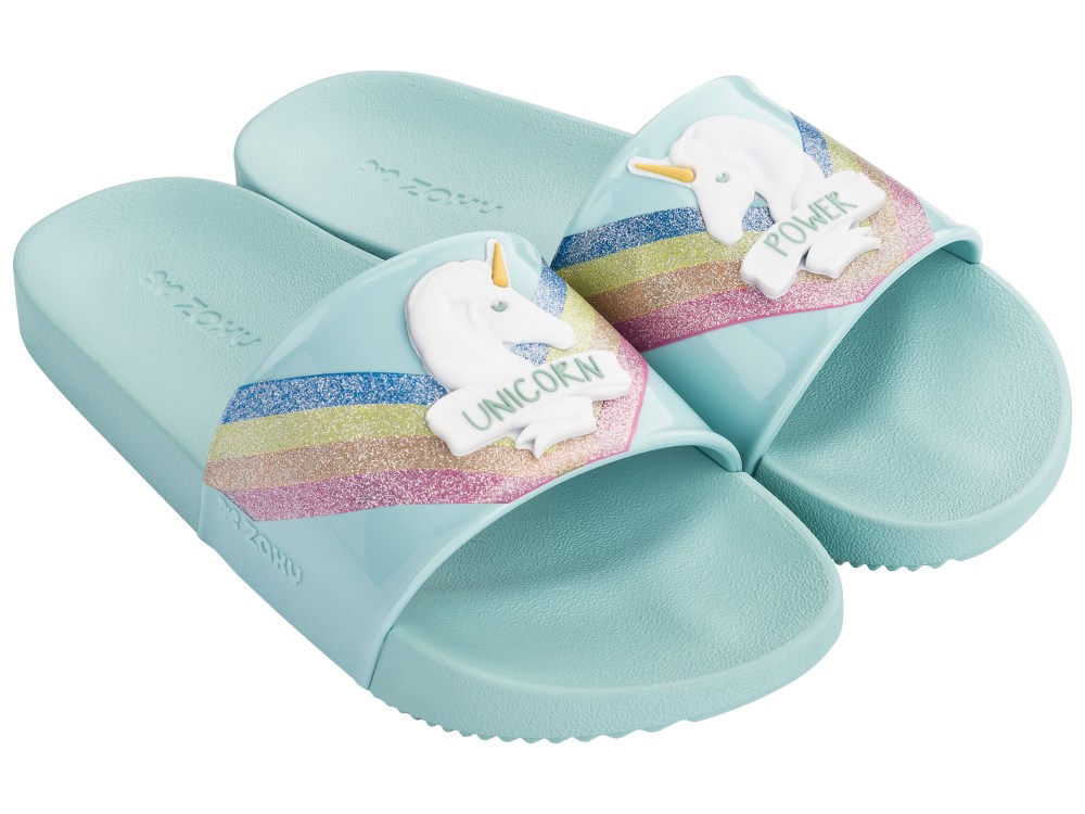 O modelo chega em duas versões com solado anatômico e tira frontal exclusiva, uma com glitter e estampa de arco-íris, e a outra com aplicação em relevo de unicórnio. Os lançamentos, que prometem virar item de desejo entre as consumidoras, estarão disponíveis nas cores azul, lilás, preto e rosa pelo preço sugerido de R$ 49,99.
