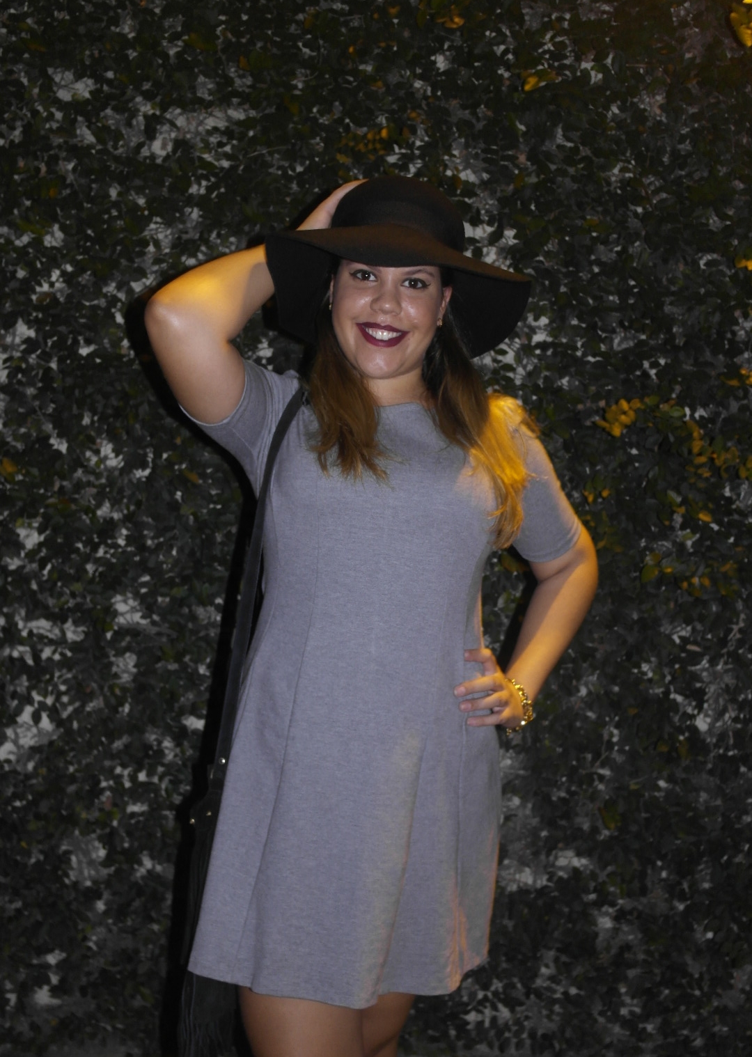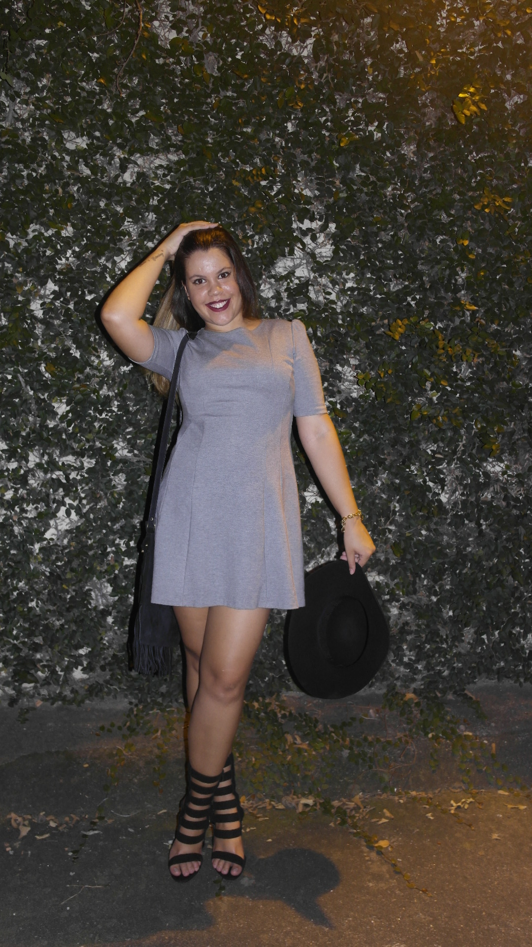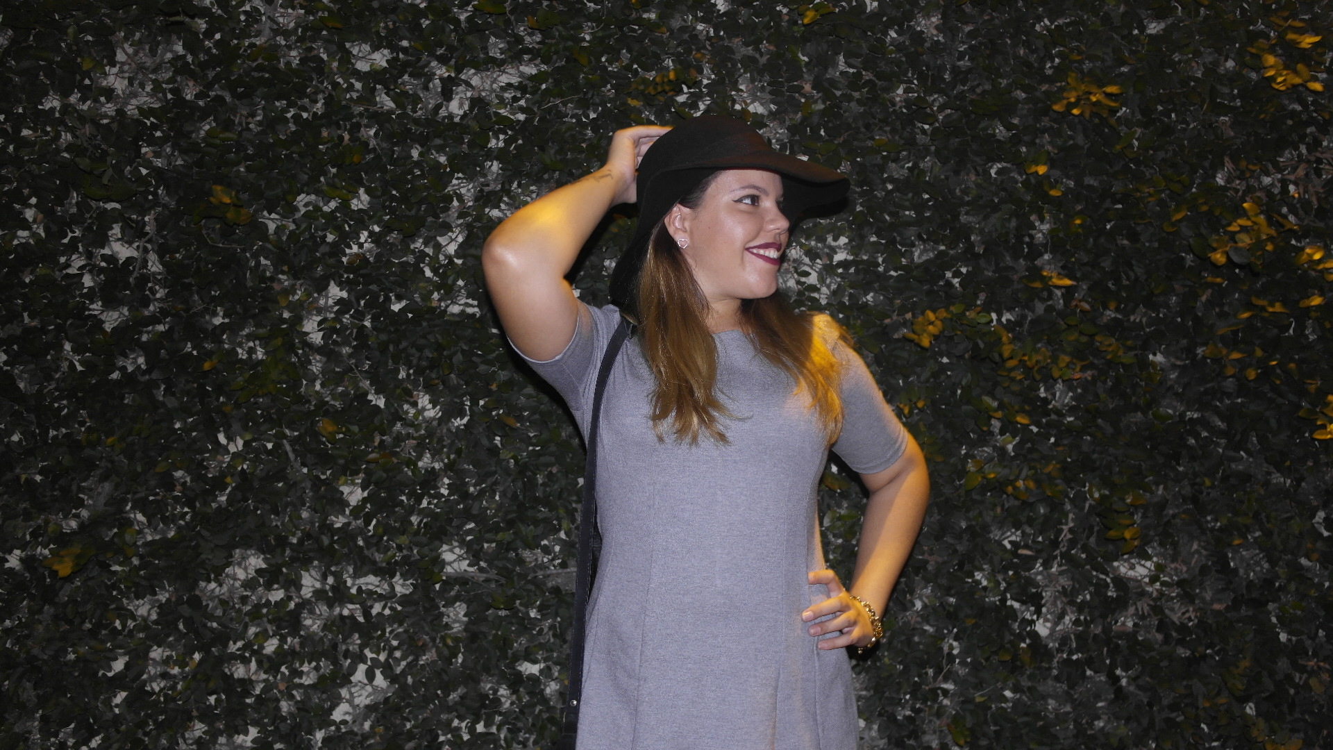 Hoje trago um look super especial, vocês provavelmente já devem saber o quanto eu amo as estações outono/inverno e graças a Deus o outono chegou para eu poder ousar dos chapéus, botas, turbantes, lenços, cachecóis, meia calça, tudo que eu amo e por isso resolvi fotografar para vocês meu look de outono. A estação outono é a transição entre a estação verão e inverno, por isso é uma estação meio terno, tem dias quentes como tem dias frios, e hoje estava um dia de mormaço, e nada melhor que ousarmos dos vestidos com tons frios como o cinza.