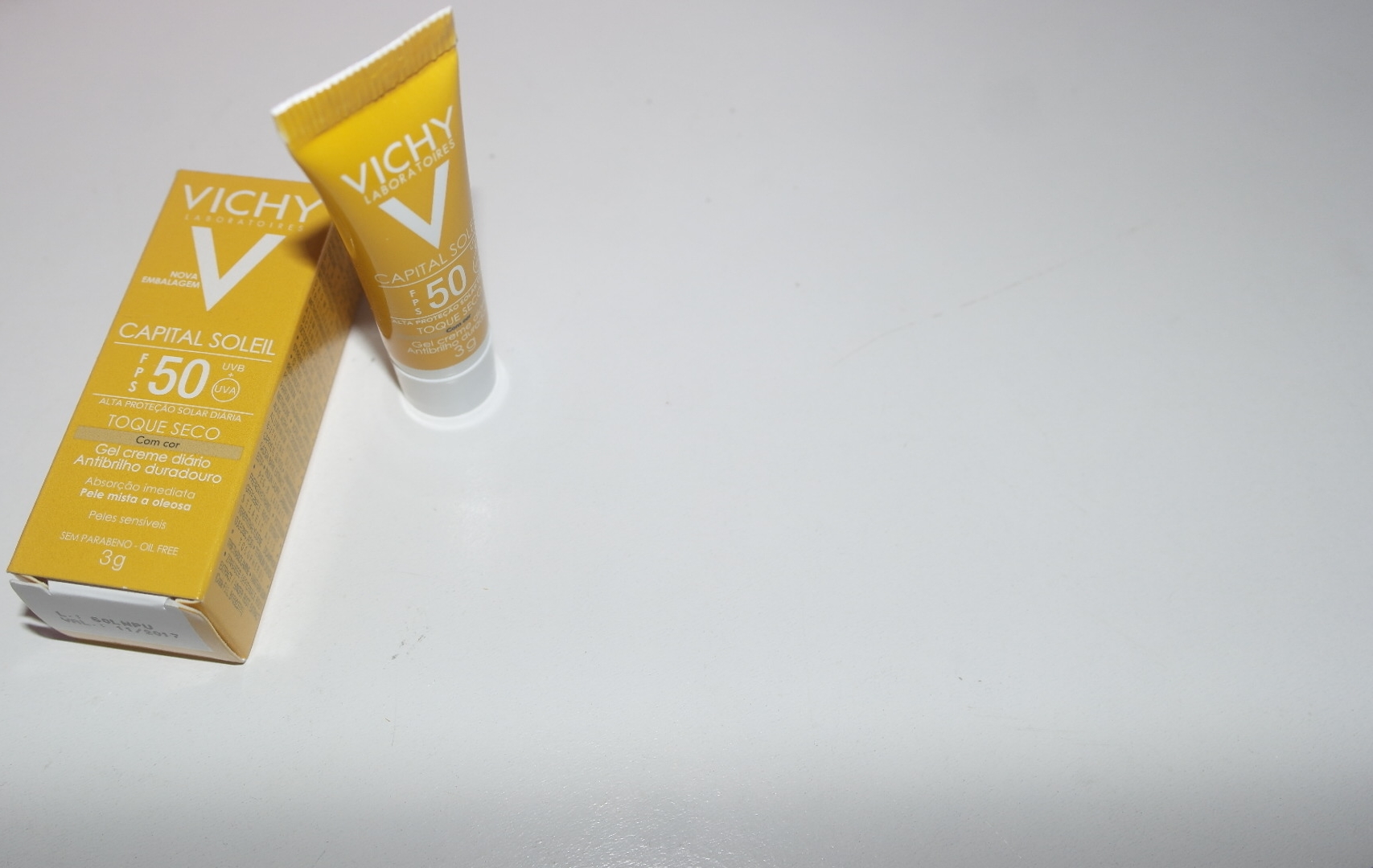Ontem falei aqui sobre o protetor solar Capital Soleil FPS 30 CLICA AQUI e hoje falarei do FPS50 sendo que esse é protetor solar com base, sendo que só possui uma cor que é um bege médio, mas pela pesquisa que eu fiz, ele se adapta ao tom de todas as peles. As característica desse protetor solar são as mesmas do FPS30, promete alta proteção o dia todo, uma textura ultra seca e deixando a pele livre de brilho e oleosidade por até 8 horas e protegendo contra os raios UVA e UVB. O protetor solar foi especialmente desenvolvido para pele mista e oleosa, como eu disse para vocês ontem, que a minha pele é super oleosa e até hoje não achei nenhum protetor solar sem e com base que seja perfeito para pele mista e oleosa que nós mulheres que temos esse mesmo problema possamos ficar o dia todo sem precisar retocar a maquiagem, deixando a nossa pele sequinha, esse protetor cobre todas as imperfeições, as vermelhidões da pele, sendo que para mim continua deixando a pele com muito brilho e isso para mim é péssimo, mas deixando claro para vocês, que comigo não deu certo, mas dependendo do tipo de pele de vocês pode dá certo. Espero que tenha ajudado.